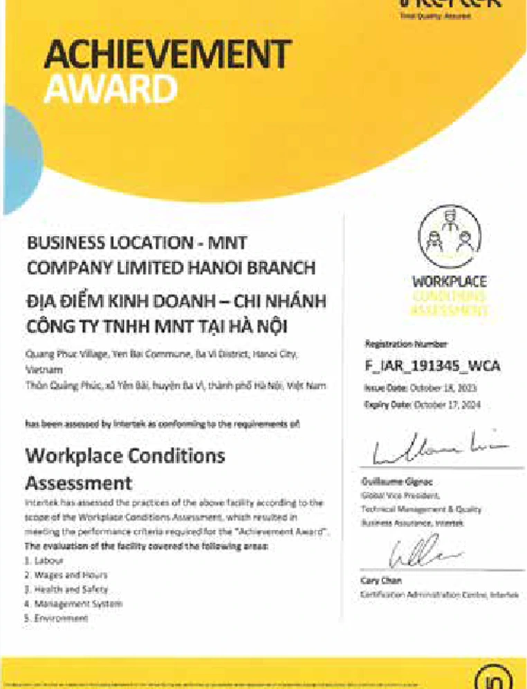 With a deep understanding of Japanese culture and strict adherence to quality management processes according to Japanese and international standards, MNT is committed to delivering highquality products, diverse in design and optimized in functionality, meeting the expectations of the most discerning customers.